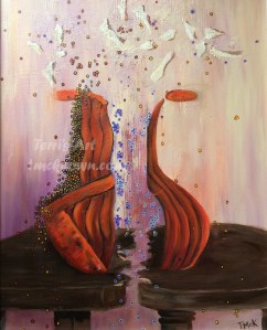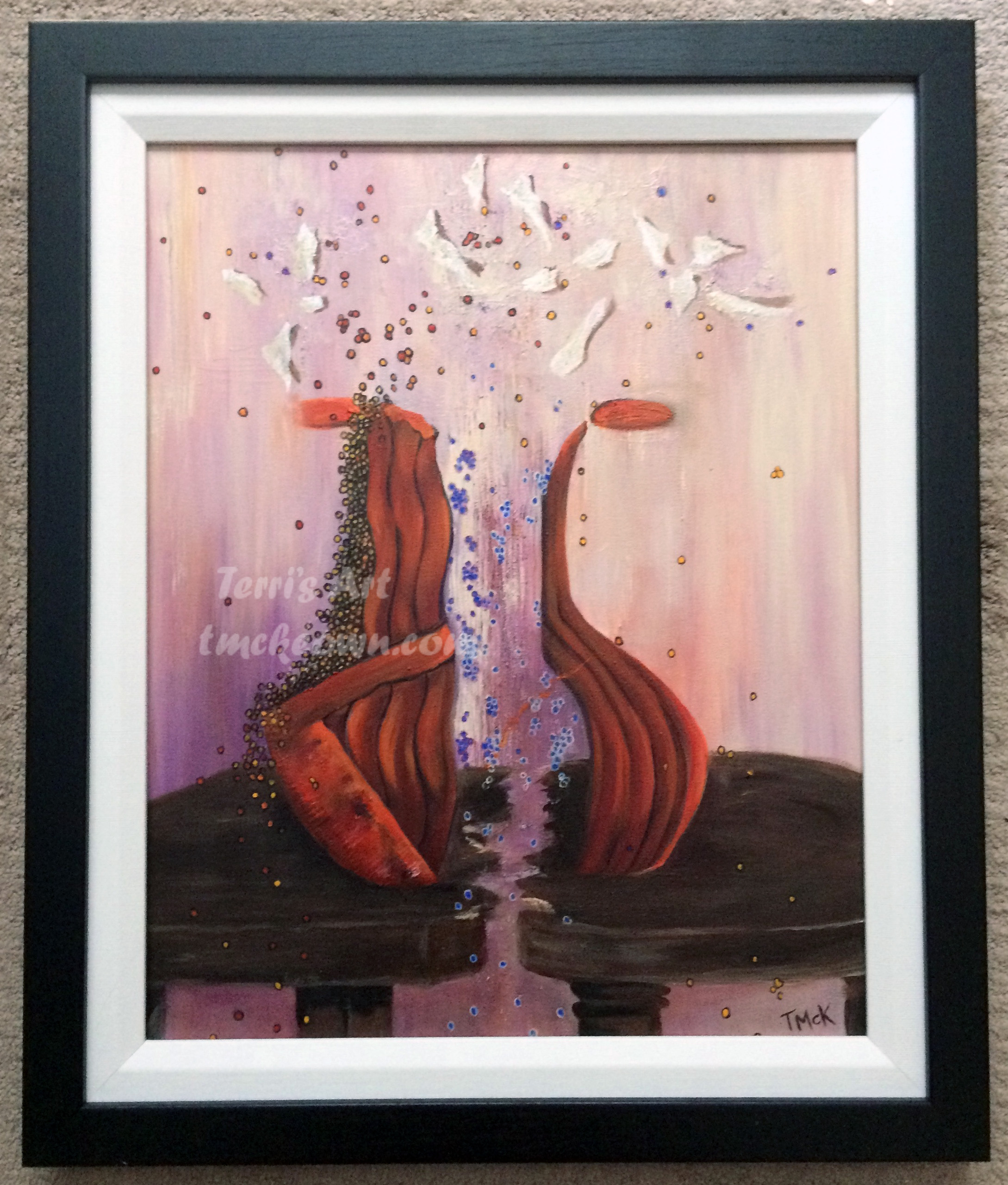 Of Two Minds Original one of a kind artwork for sale, please contact me here. Acrylic on canvas 16 x 20″ (40.64 x 50.8 cm) Framed 20.25 x 24.25″ (51.44 x 61.6 cm) This piece is pictured framed here. Like Loading...